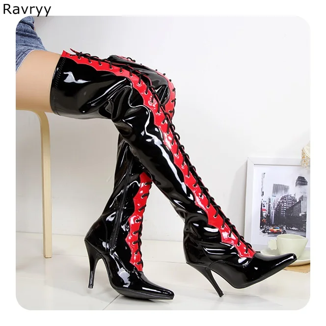 Cross-tied black red mixed color Woman long boots Pole dance Model Show Fun Club Party Female Shoes